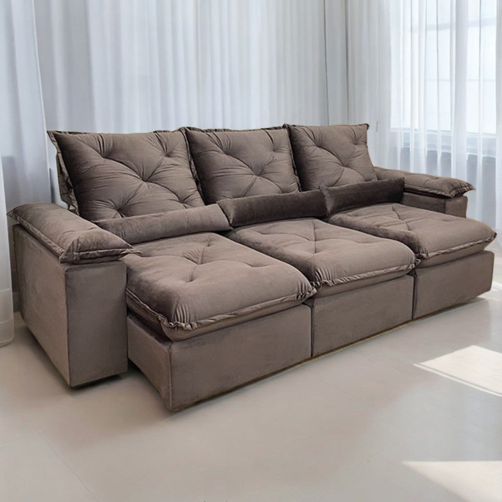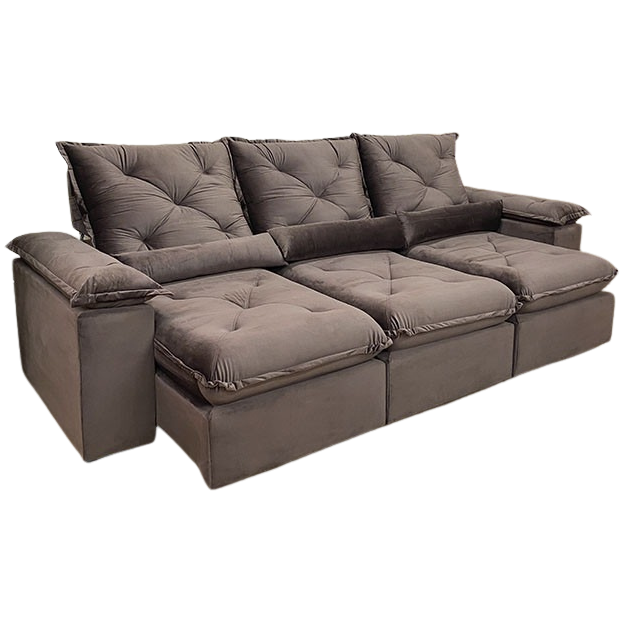 Sofá Retrátil e Reclinável Brasão 2,70 m Veludo Marrom – MD ESTOFADOS